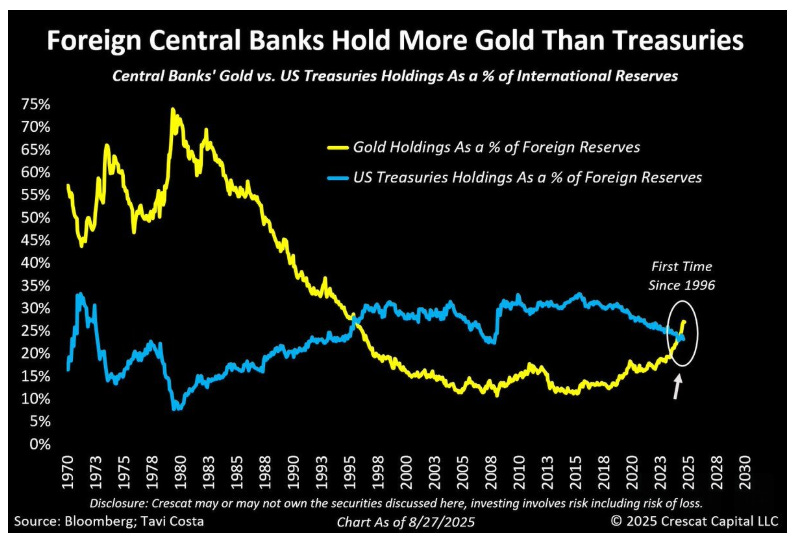 Fact 1: Central banks are dumping US Treasuries and buying gold. This trend is just getting started