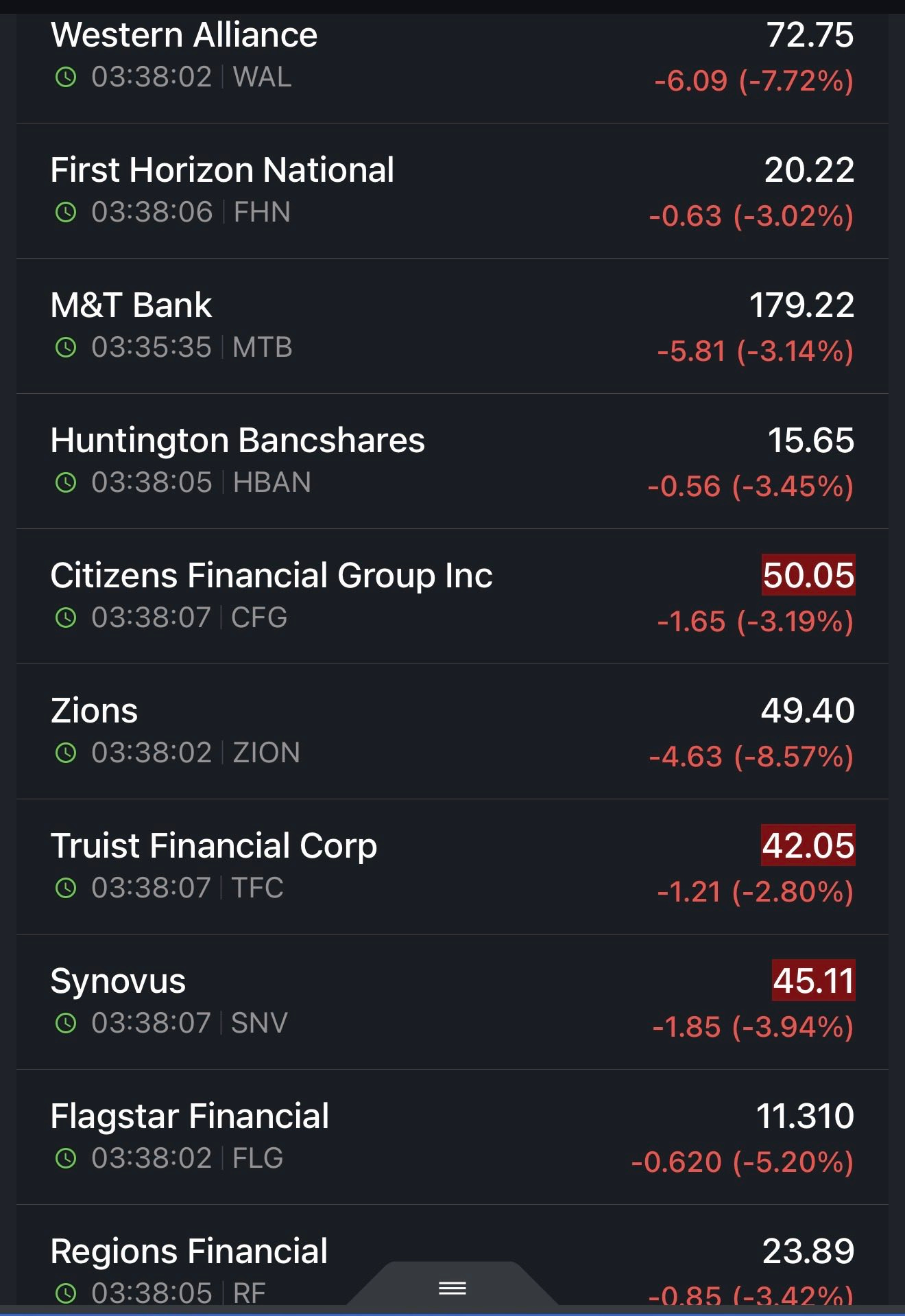 Gold is screaming that the banking system is in trouble. Trading at a record $4,250 per ounce, gold has surged more than 57% year-to-date, overtaking every major asset class and even outpacing inflation itself. Historically, this kind of vertical move happens only when liquidity in the traditional financial system dries up—and that’s precisely what’s unfolding across U.S. regional banks. Western Alliance plunged 10%, Banc of California 7%, EBC 4.25%, First Horizon 3%, Synovus 4%, and Flagstar Financial 5%, painting a grim picture of mounting strain inside the credit system.