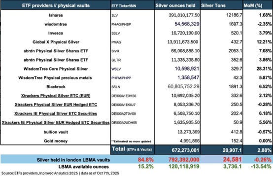 As a large amount of spot silver is linked to ETFs and cannot circulate freely in the market, traders on Twitter have shared estimates that the freely circulating silver in the London market is less than 4,000 mt. The SLV prospectus mentions that custody can be in warehouses in the UK or New York, but given the London market’s focus on spot trading and New York’s emphasis on futures trading, it is generally assumed that SLV’s primary physical holdings are in London warehouses.