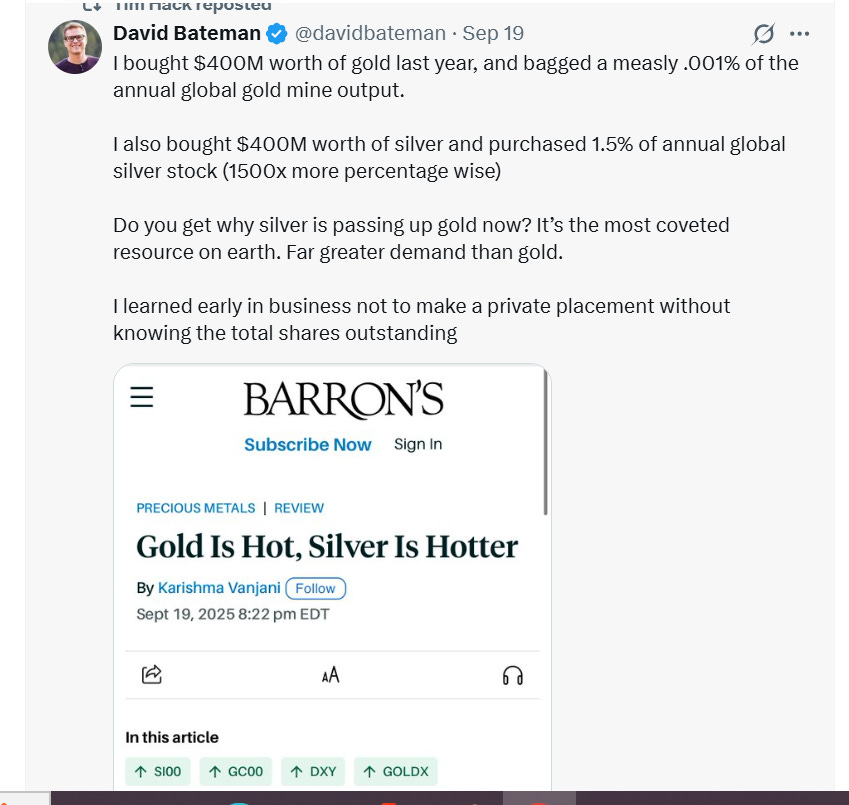 plus Barrons article of September 19th during Friday’s silver and gold rally which is continuing today