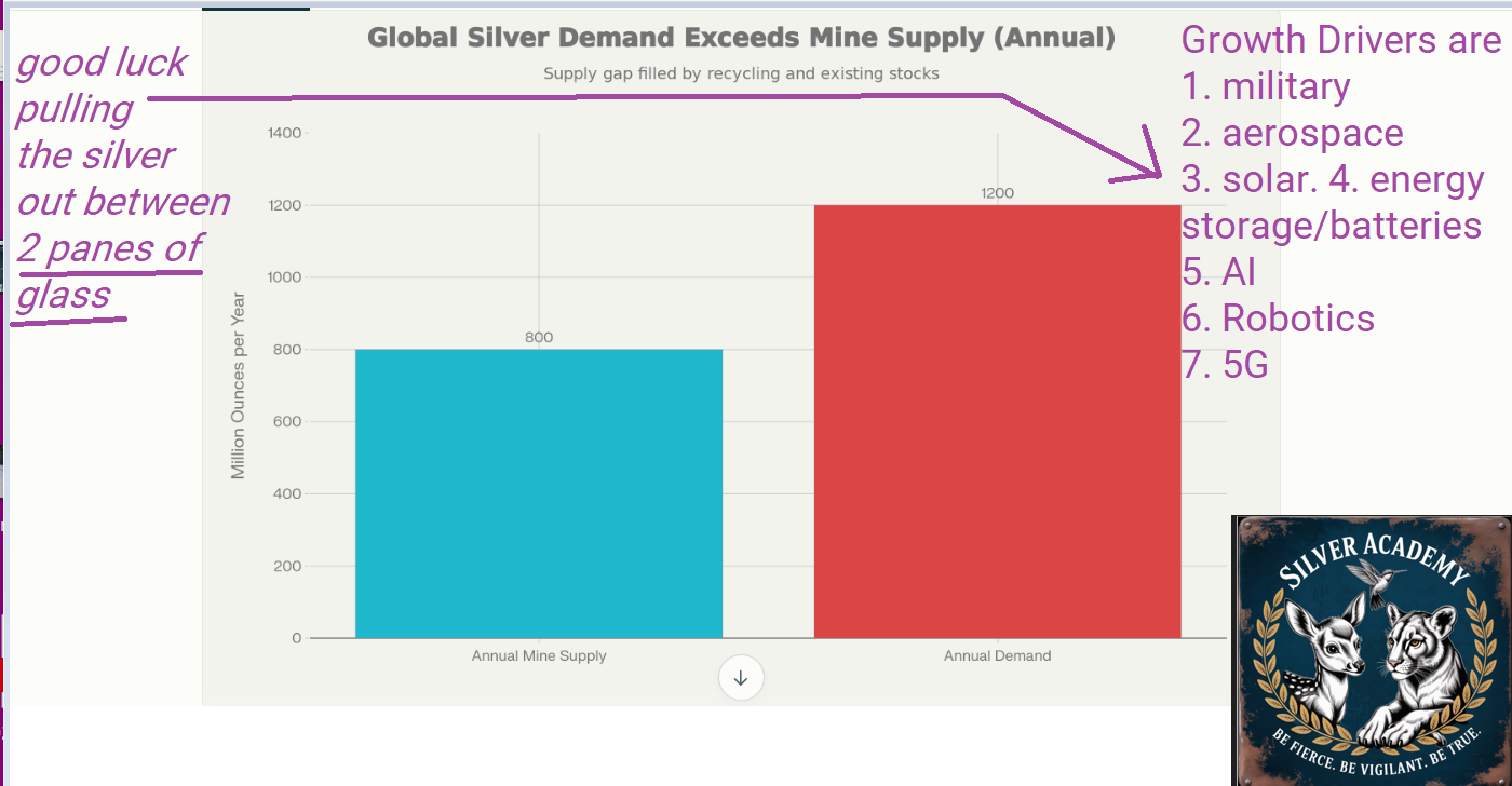 800 million ounces mined per year against growing demand. Just like Eric Sprott recently stated, “They Can’t Supply the Demand”