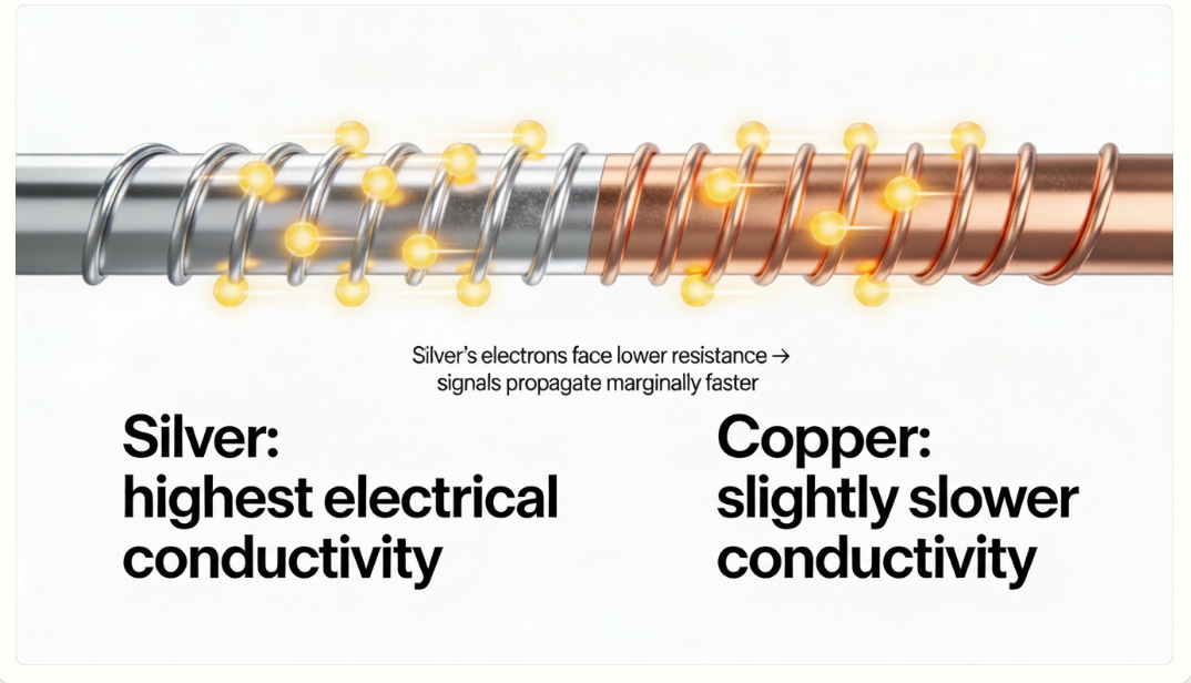 Silver isn’t just a precious metal. It’s the metal that powers the future: the fastest conductor on Earth, with 5–7% higher conductivity than copper. The electrons move faster. The signals transmit cleaner. The efficiency drives everything from EV acceleration to AI computation.